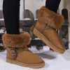 Women’S Chunky Heel Rhinestone Belt Buckle Round Toe Boots 02680696C